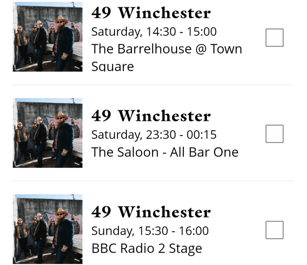 This year there is also a mysterious ‘Barrelhouse stage’ accessed through the town square, which you’ll apparently need tickets for. We’re still chasing news of the promised daytime shopper passes to allow non ticket holders into the food stalls and Cowboy boot stalls. But the Barrelhouse is also hosting some evening shows to run during the main arena times, the time when festival stage music used to stop and non-ticket holders previously had to disappear into the pub.