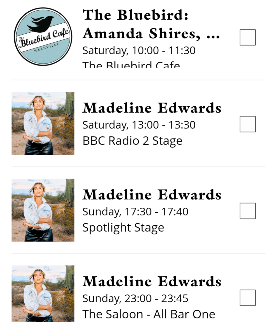 If you have an arena ticket you can head into all the extra stages except the paid shows (Bluebird Café events and After Parties). This includes the large Radio 2 Stage which hosts some higher profile acts, and the Saloon above All Bar One for a more intimate vibe shows, getting up close and personal.